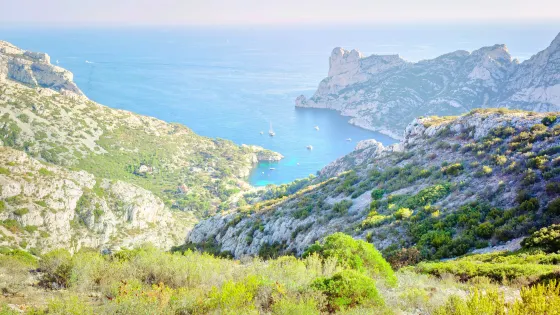 Calanque de Sormiou是Les Calanques中最適合攀岩的峽灣,此地山勢特殊、土壤覆蓋面小,灰白岩石中生長出堅韌的植物,十分神奇。因此許多登山愛好者、攀岩熱衷者都會來這裡,爬到山頂可以遠眺馬賽市區。