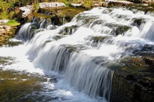 Park with bbq, waterfall, benches
