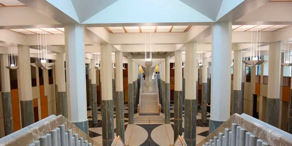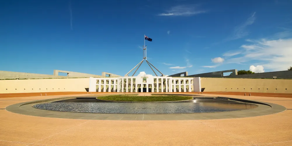 它位於澳大利亞的首都堪培拉的中心,是世界上最著名的建築之一。它以其宏偉的建築結構著稱,並以大量使用磚石和優質木材及收藏包括世界上最大的掛毯之一在內的藝術精品為特色。
