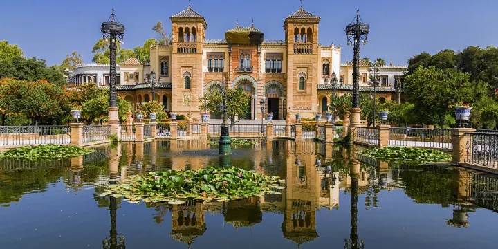 瑪麗亞·路易莎公園的前身是一座浪漫派風格的花園,由路易莎·德·奧爾良公主捐贈,1929年為拉丁美洲博覽會而改建。建築物一側的河邊放置著供遊人休息的座椅,上面描繪著西班牙各地的歷史畫面。