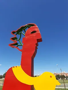Escultura Mujer roja y pajaro de Jacinto Muñoz