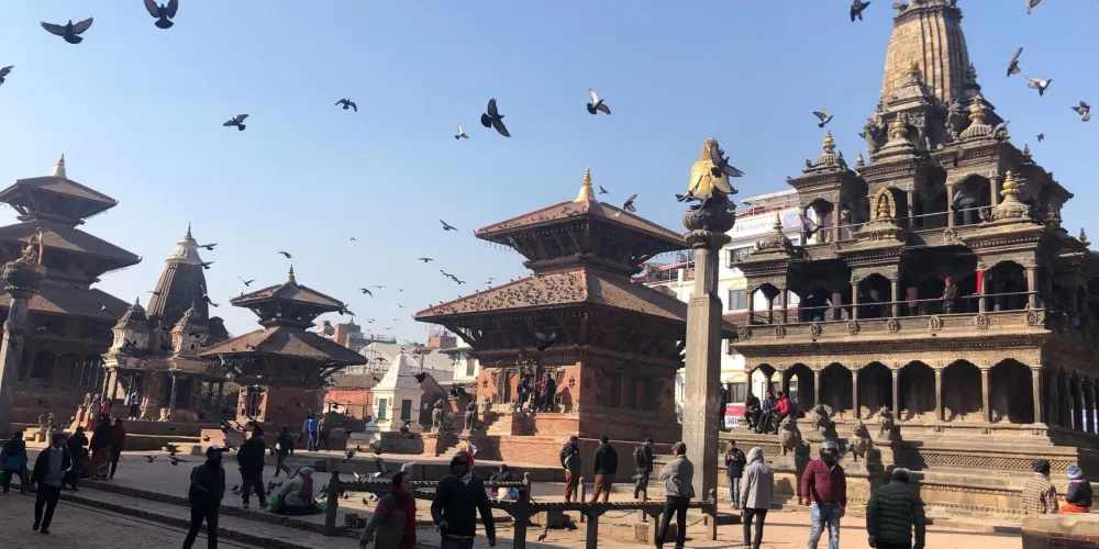 帕坦王宮廣場是尼泊爾世界文化遺產之一。廣場除了古老的宮殿外,寺廟林立,是尼泊爾令人驚嘆的「紐瓦麗式建築」的大統合。長方形的廣場南北長,東西短,帕坦皇宮佔據了廣場的整個東部。廣場西部則密佈著各式各樣的寺廟,與皇宮遙遙相望。
