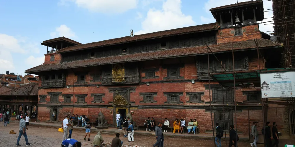 帕坦王宮廣場是尼泊爾世界文化遺產之一。廣場除了古老的宮殿外,寺廟林立,是尼泊爾令人驚嘆的「紐瓦麗式建築」的大統合。長方形的廣場南北長,東西短,帕坦皇宮佔據了廣場的整個東部。廣場西部則密佈著各式各樣的寺廟,與皇宮遙遙相望。