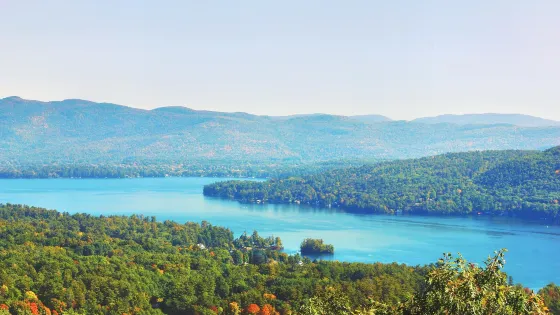 喬治湖,又名女王湖,是一條長達32.2英裡的湖泊,顯得綿長而又狹窄。最早這裡被當地美國人命名為Andia-ta-roc-te,後來在1755年,英軍殖民者進駐後將這條胡命名為喬治湖,用以紀念喬治二世君主。