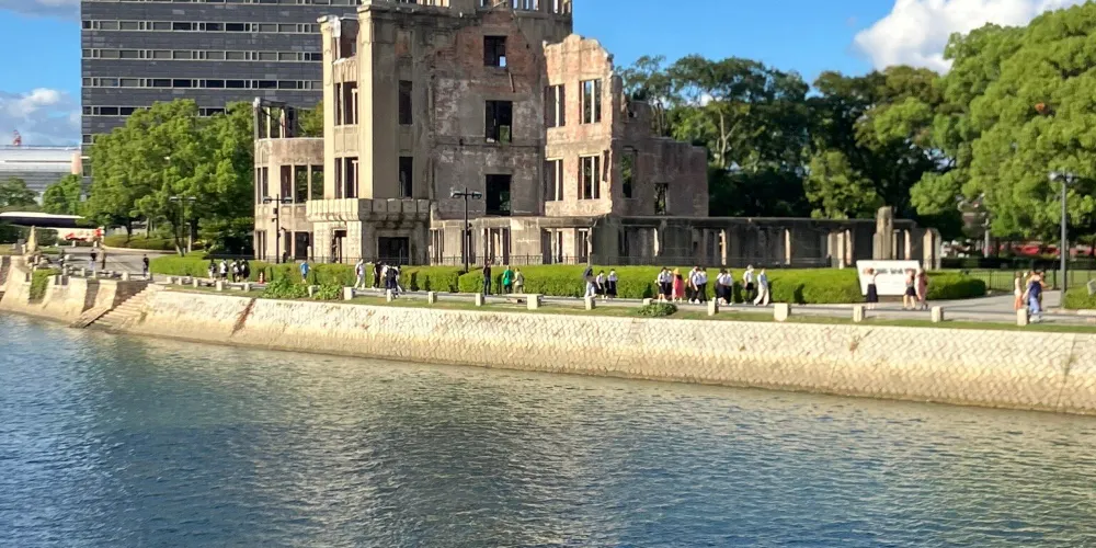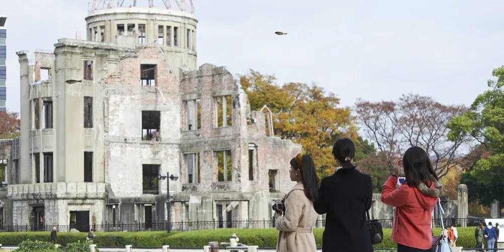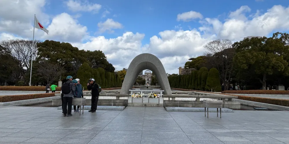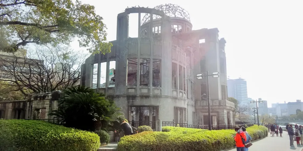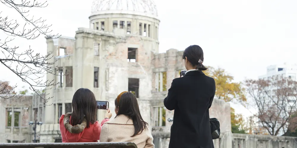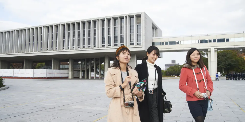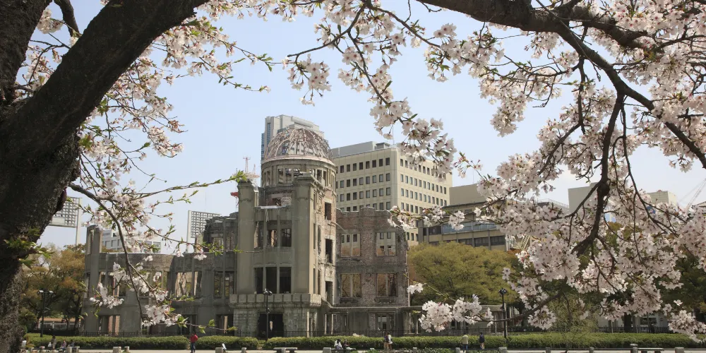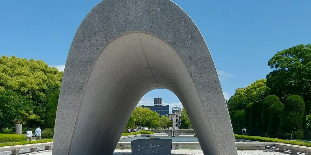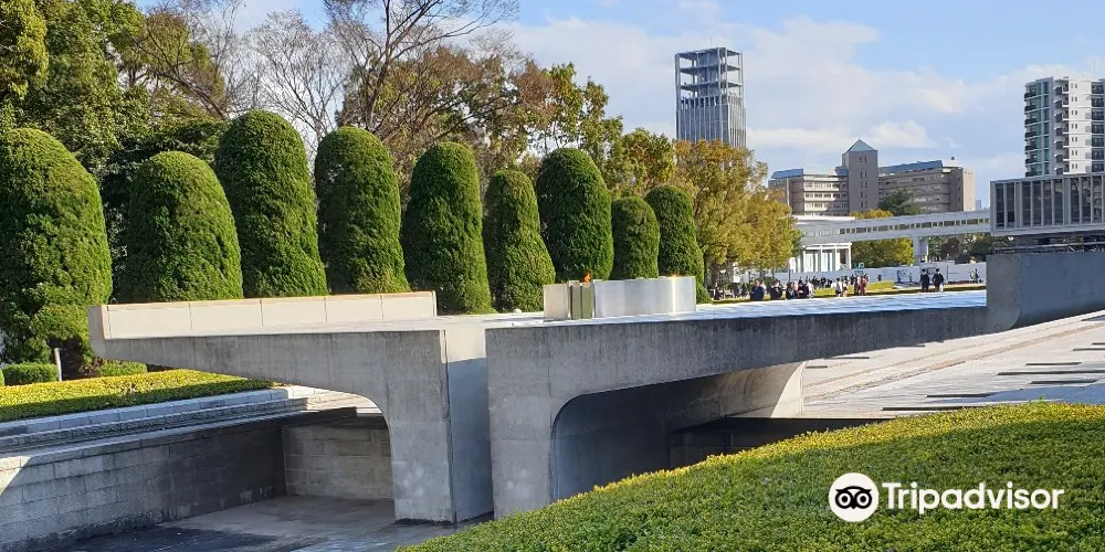 廣島和平紀念公園位於廣島市中心,1954年由日本建築師丹下健三設計建造。公園內綠蔭成蔭,春季櫻花盛開,兩條河流圍繞公園流淌,與二戰時期原子彈爆炸帶來的嚴重創傷形成了鮮明對比。公園內有原子彈爆炸逝世者紀念碑、廣島和平紀念資料館等。每年八月六日還會舉行和平紀念儀式。