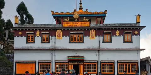 Ghoom Monastery位於印度大吉嶺,是當地周邊最古老的藏廟,又稱Yiga Choeling Monastery。寺廟內的一尊巨大的彌勒佛粘土雕像是最引人注目的,端莊肅穆。佛像前另有2盞巨大的長明油燈。這裡也是觀賞幹城章嘉的地點之一。