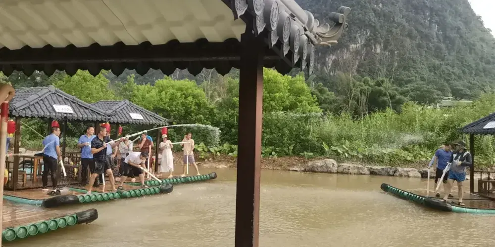 桃花江是漓江的支流之一,這里河道狹窄,在桂林地段的河道更是形成了一個大“S”形和兩個小“S”形。桃花江與漓江的交匯處便是像山景區所在地,江畔還有捨利塔、虹橋壩、朱紫牌坊、獨腳亭等古蹟。桃花江大多作為兩江四湖中的一景為遊客所熟悉,因此多數遊客選擇在乘船夜遊兩江四湖時欣賞它的美景。