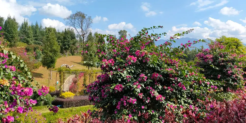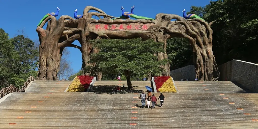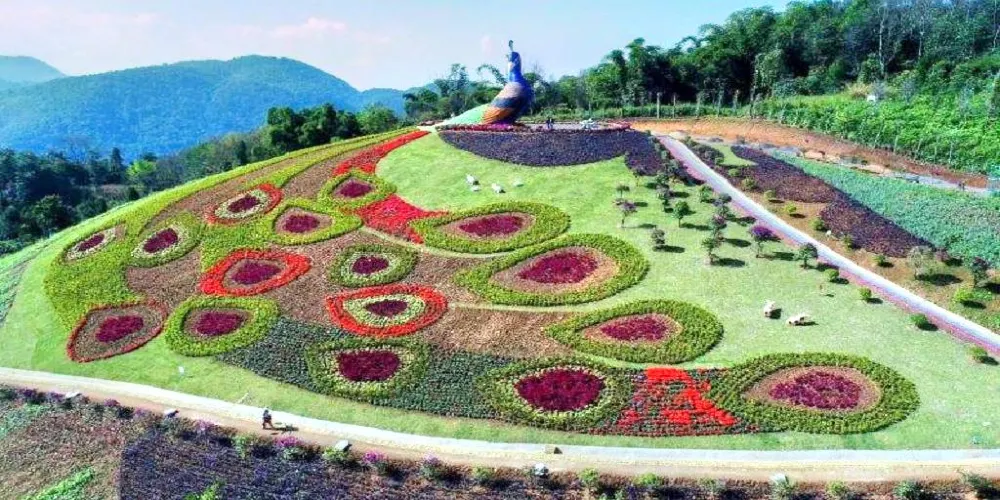 孔雀谷位於雲南省德宏州芒市南天門放馬橋。一期由兩大主題和五個版塊構成:一個主題是孔雀,孔雀系列元素將申報世界吉尼斯紀錄,重點突出德宏是美麗的孔雀之鄉這張名片;第二個主題是原始森林生態觀光遊,景區植被類型豐富多樣,樹木造型奇特,有孔雀樹、迎客樹、許願樹、長壽樹等,可觀賞性高,古樹到處都是,有的需五六人才能環抱,森林負氧離子豐富,被譽為天然的大氧吧。