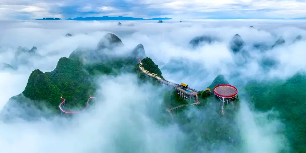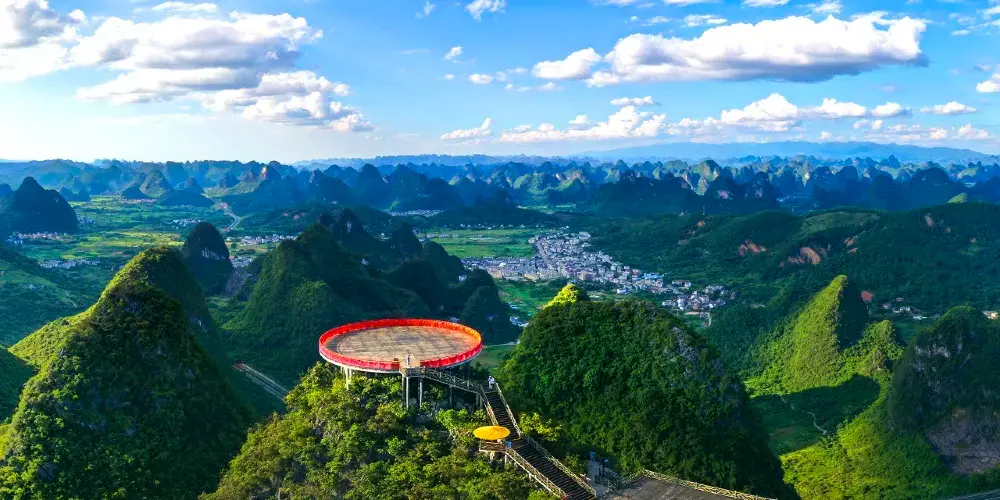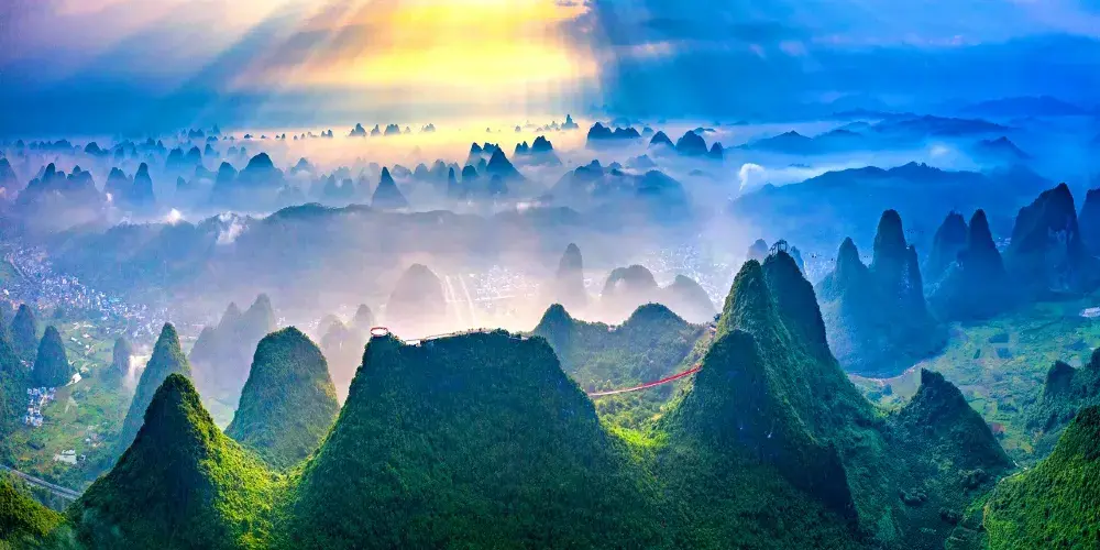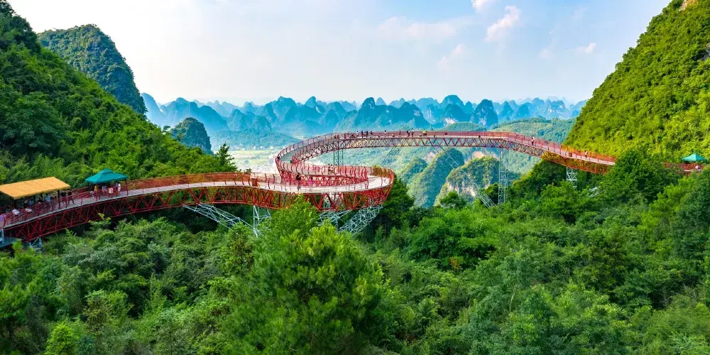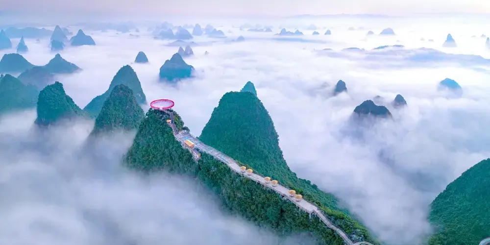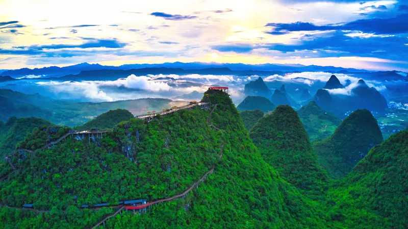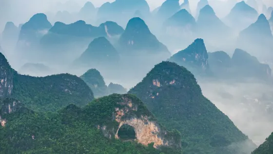 十里畫廊-月亮山位於桂林市陽朔縣,是陽朔境內奇景,位於十里畫廊景觀帶的末端。這座山是一座拱形山峰,山頂下方有一個貫穿的大洞,好像一輪皓月,渾然天成。從不同的角度看這座山,此洞形狀也隨著不斷變化,非常有趣。