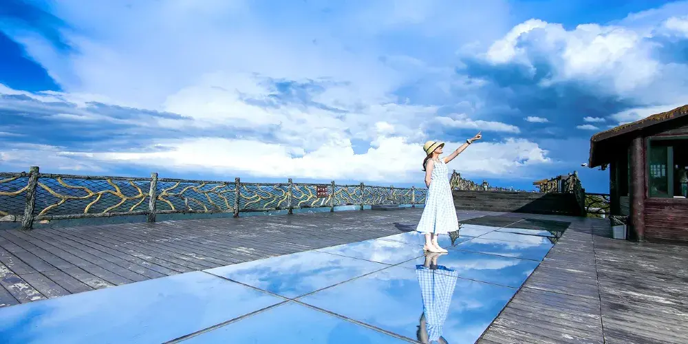 山高約380多米,遊客可沿著一條800多級的登山道直達山頂月洞。月洞面積很大,高寬各有50米,但山壁只有幾公尺厚。洞的頂部掛滿了形狀各異的鐘乳石,其中兩塊很像月宮裡的吳剛和玉兔。