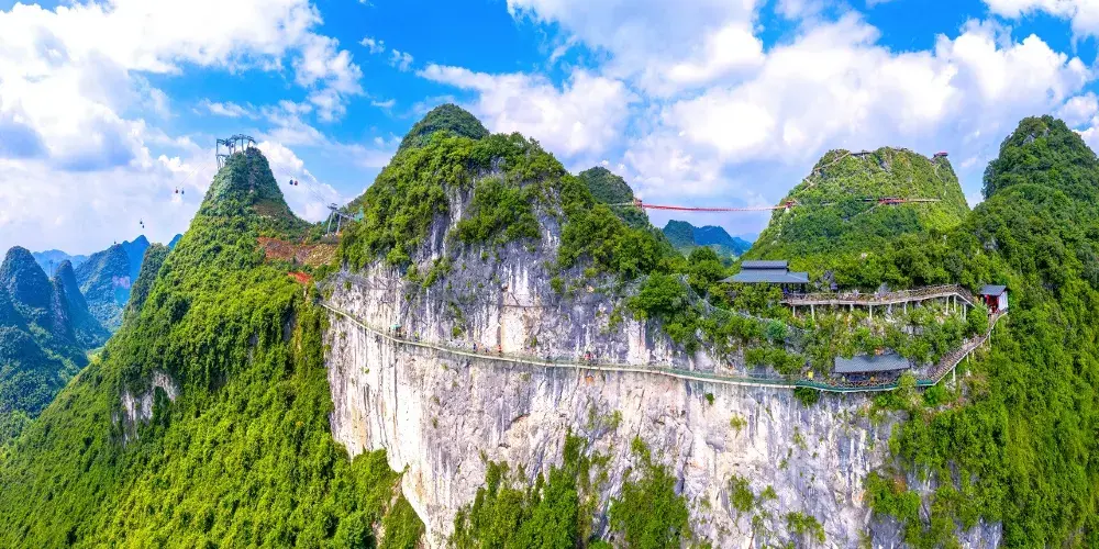 其實欣賞這座山可以站在遠處欣賞,景區對面有一處餐廳雲集的休息區,便是可遠觀山的位置之一。而這座山因其獨特的地質環境,也成為攀岩愛好者的聚集之地。