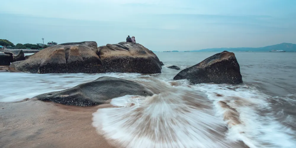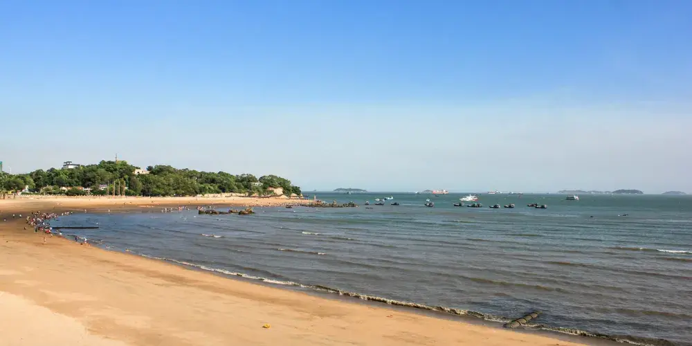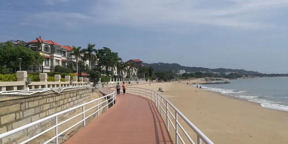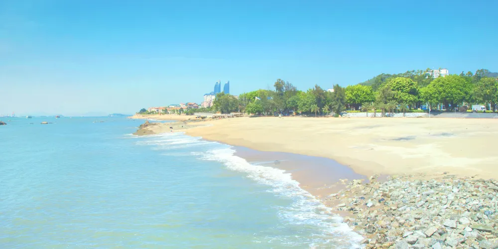 珍珠灣位於廈門市廈門島南部,東至曾厝垵,西至胡里山砲台,南至環島路與大擔島隔海相望,北至禦屏山西姑嶺,三面環山,一面臨海,風景秀麗,它是一座當地的沙灘浴場,這裡的遊人不是很多。這裡的沙細海清,風景優美,旅人可以在沙灘上漫步,近距離感受大海陽光的溫暖。這裡同樣是是許多新人拍攝婚紗照的佳地。