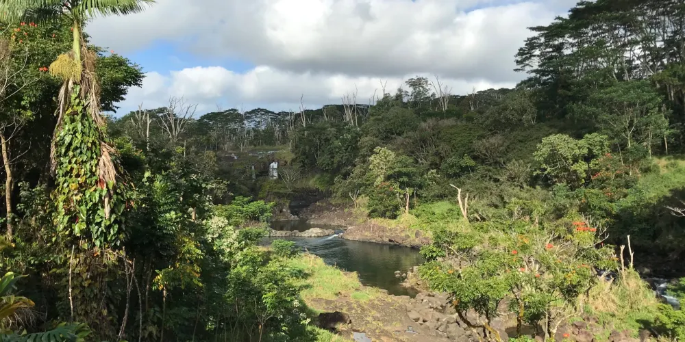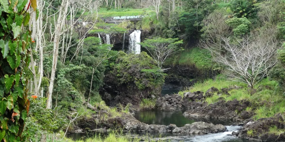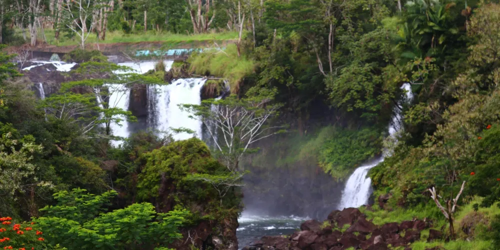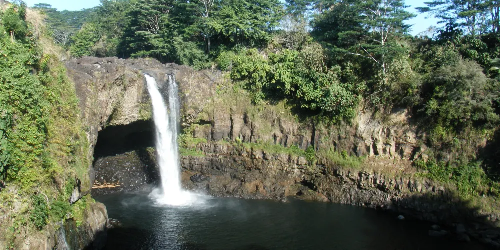 彩虹瀑布位於大島希洛市的西部,因瀑布的水霧經陽光折射後形成美麗的彩虹而出名。彩虹瀑佈在四周層層疊疊、青翠欲滴的熱帶植物的掩映下,顯得它非常的與眾不同。彩虹瀑布是夏威夷群島中為數不多的無枯水期瀑布之一。