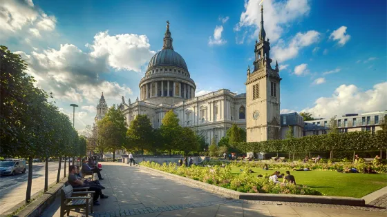 聖保羅大教堂是英格蘭的建築傑作和國家慶典場所。聖保羅大教堂是唯一一座由建築師(克里斯多福·雷恩爵士)設計、建造和完成的大教堂。大教堂自公元 604 年以來就矗立在這裡,目前的大教堂是在 1666 年倫敦大火後重建的,至今已有 300 多年歷史。