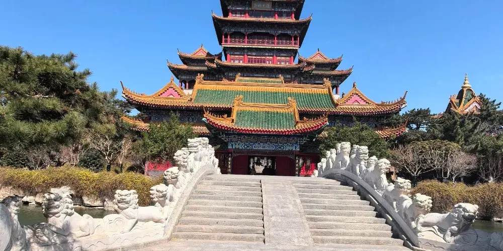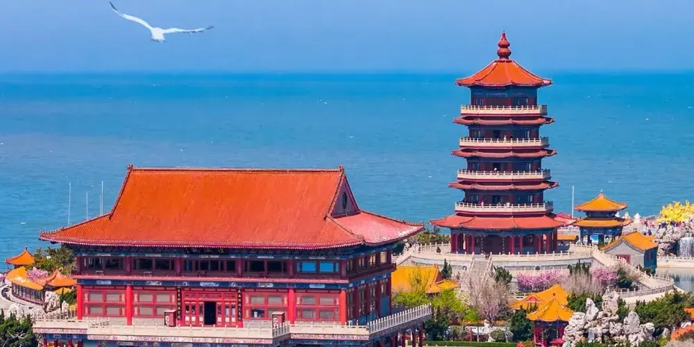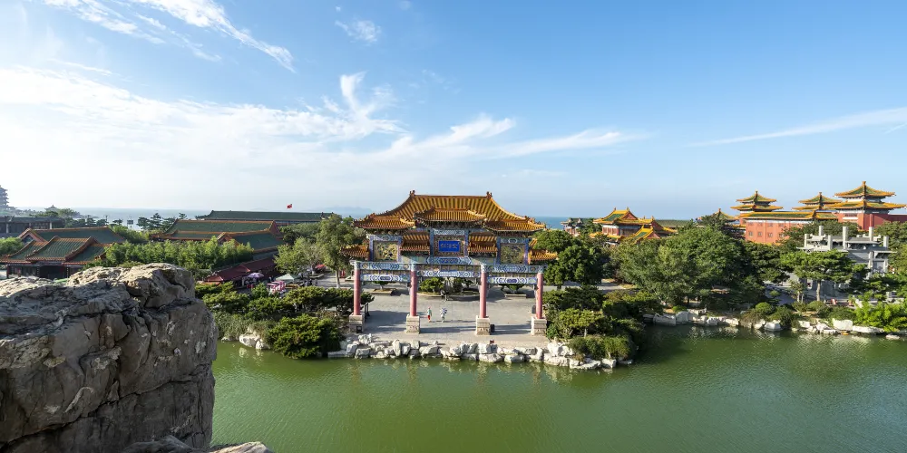 三仙山風景區位於蓬萊市北部的黃海之濱,毗鄰八仙過海景區,是一座以道教文化為核心的主題景區。景區內建有氣勢雄偉的亭台樓閣、金碧輝煌的飛簷翹角,再現了神話中「三仙山」的意境,還可以欣賞園內珍藏的木雕、玉雕等藝術珍品,其中以一尊世界上的緬甸水白玉冰種釋迦牟尼臥佛像尤為珍奇。三仙山指的是古代神話傳說中「蓬萊、方丈、瀛洲」三座仙山,景區內的各種宏偉輝煌的「仙宮殿閣」也正是按傳說中的仙境所仿建,是個非常適合拍照的地方。