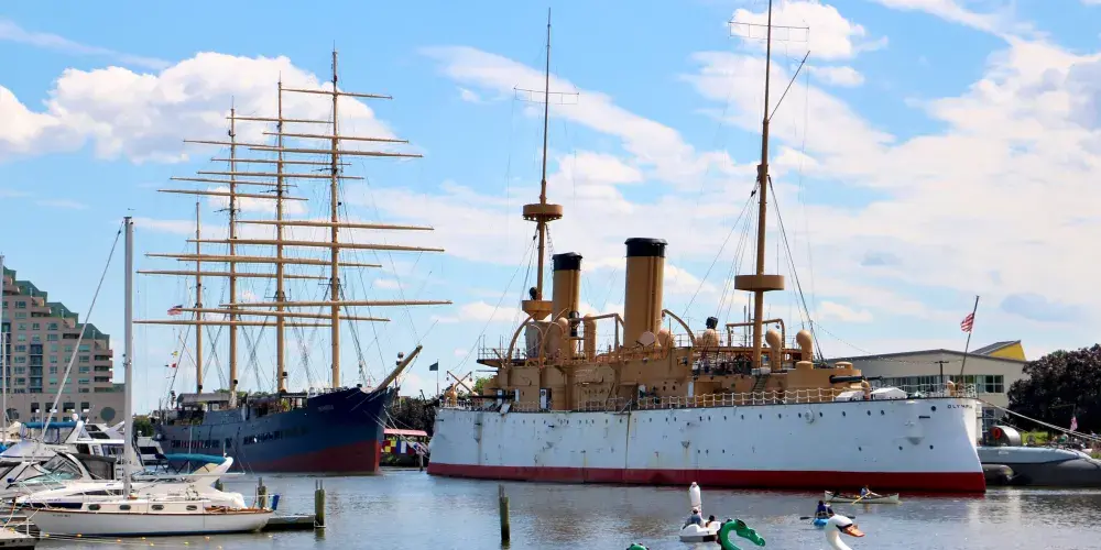 想要遊河賞景的遊客可以去搭乘每小時一班的渡船,在平靜的德拉瓦河上通覽費城的市貌。
