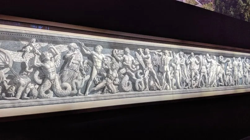 △ 佩加蒙博物館可謂是博物館受歡迎的一座,它也是世界著名的考古博物館之一。這幢灰色的建築外觀莊嚴大氣,很容易讓人聯想到各色古代建築。由中央門進入後,左邊是古羅馬及希臘藏品展示館,右側是古西亞展覽館,二樓是伊斯蘭文化展示區。其中鎮館之寶-佩加蒙宙斯大祭壇(Pergamon-Altar)不容錯過,祭壇歷史可追溯到公元前2世紀,祭壇高9.66米,台座部分的神像雕刻十分精美。此外,西元前二世紀左右的小亞西岸密列特的市集大門和巴比倫的依舒塔爾城門也很值得一看。