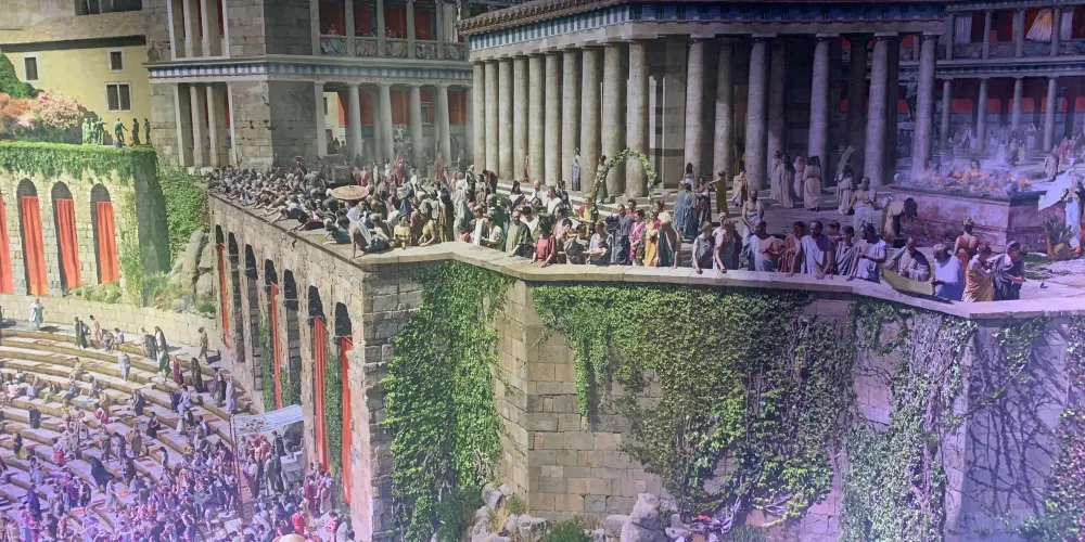 全景圖將遊客帶回西元 129 年,展示小亞細亞西海岸的古城帕加馬。亞德加·阿西西 (Yadegar Asisi) 重建了羅馬帝國皇帝哈德良 (公元 117-138 年) 統治時期的這座城市。