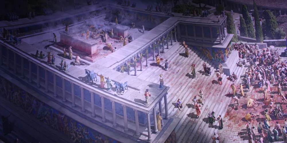 第一幅帕加馬全景圖的視覺效果已被徹底重新製作。與古物收藏館團隊合作,藝術家構思了大約 40 個新場景並將它們編織到畫中。 2017 年 10 月,在柏林電影製片廠精心拍攝,作品正式完成。
