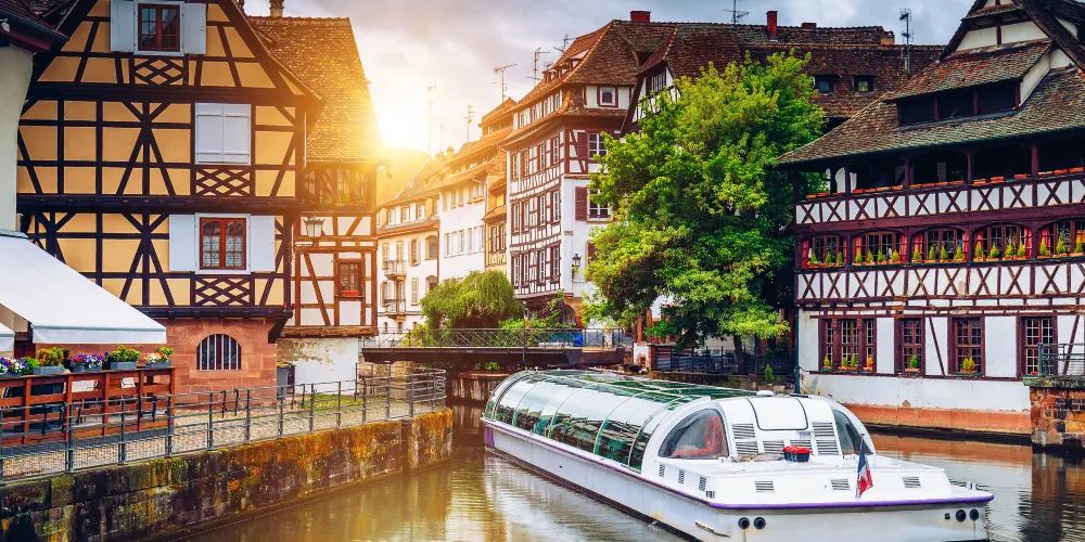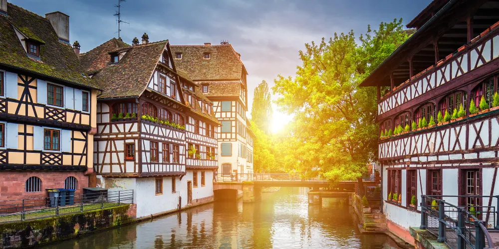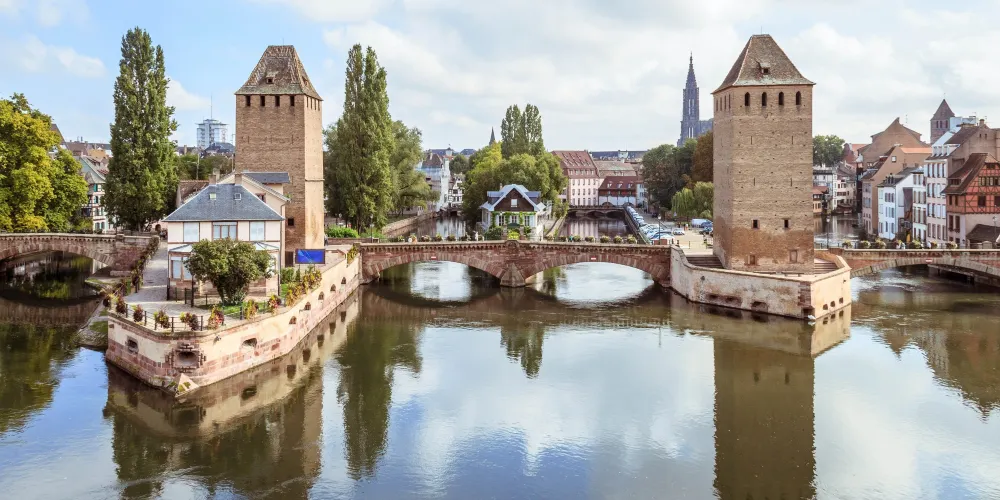 小法蘭西又名“小法國”區(Little France),斯特拉斯堡市內著名遊覽景點,風景迷人。此處的運河橋樑縱橫交錯,沿途都是褐色屋頂、外牆用黑木條搭建的古舊房屋古意盎然,窗檯上的花朵迎風招搖,偶爾經過的遊船滑過水麵,波光粼粼滿是合諧和浪漫。無論是在石板道上散步,還是乘船遊歷運河,都會覺得十分愜意。