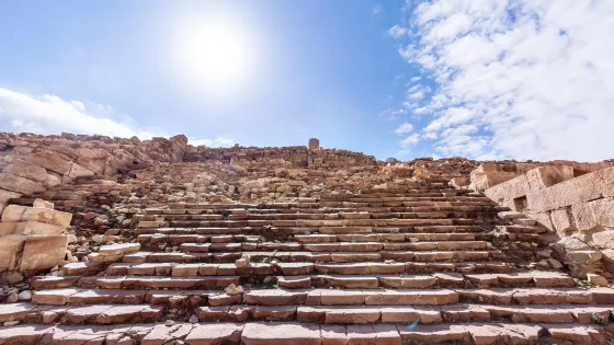 距離市中心3.7公里高高的台階原本是神廟的基座,上面60根立柱現已坍塌。這座遺址是佩特拉古城中規模較大的建築,值得參觀。Nabatean Theatre