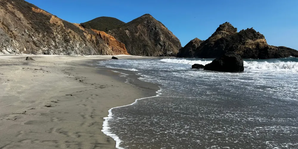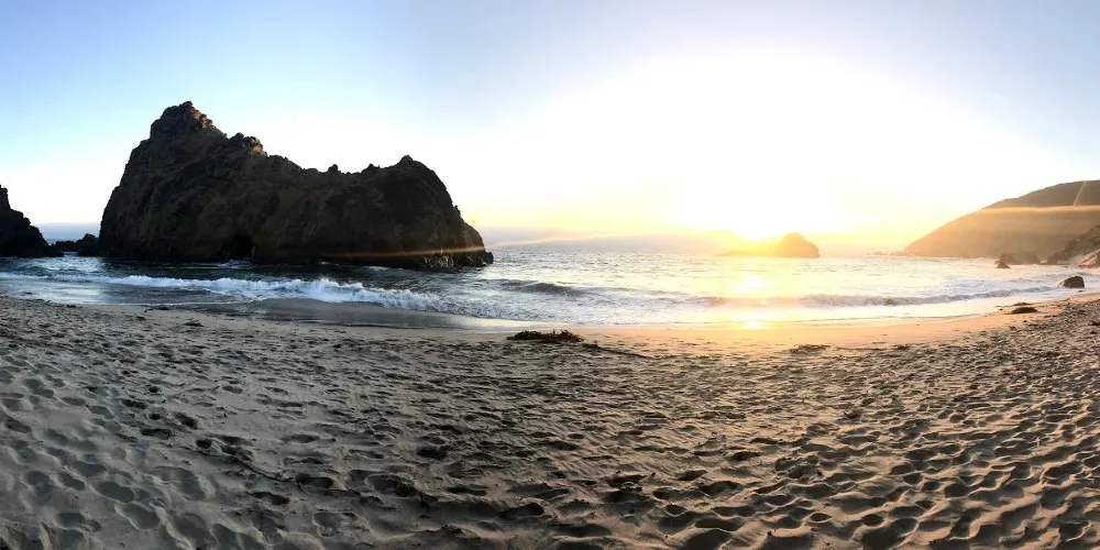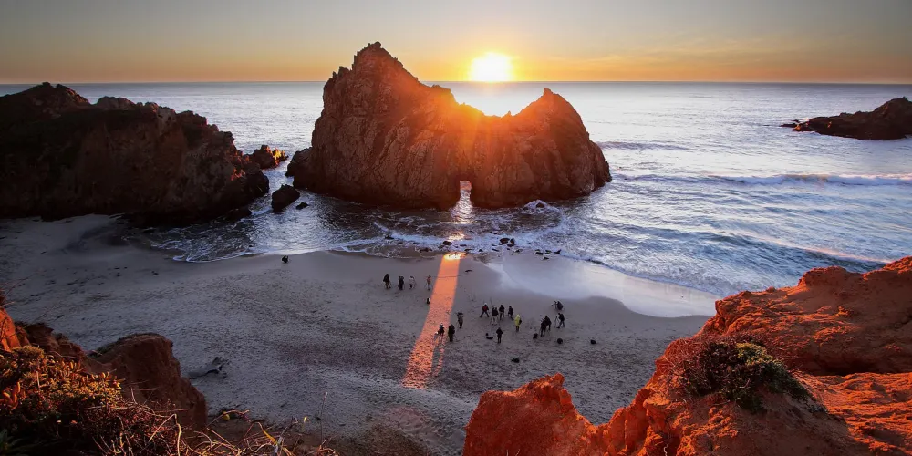 Pfeiffer Beach位於加利福尼亞州的一號公路沿岸,是當地最受歡迎的沙灘之一。這裡是世界上獨一無二的紫色沙灘。劇烈的風化作用使得錳含量很高的山石瓦解成沙子散落在沙灘上,使得沙灘呈現深紫色,十分浪漫。從海灘入口進入,你會看到一座門型的礁石,中心處有個空洞,透過洞可以看到海平面,海水不斷地湧入,也是非常有特色。