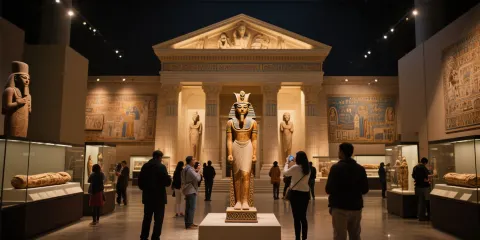 埃及博物館位於開羅市中心的解放廣場附近,內部陳列著古埃及時期至古羅馬統治時期的遺物。來此可親眼目睹鎮館之寶圖坦卡蒙法老的黃金面罩。博物館為古樸的磚紅色建築,分為兩層。博物館入口的設計融入了古埃及藝術的特徵,大門的外廓是一個圓形拱門,博物館的一樓按照埃及古代歷史發展順序展出。