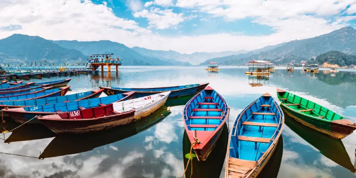 費瓦湖可謂博卡拉一處迷人的休閒度假勝地。你可以在湖上划船、健行或騎自行車,還可以找一家舒適的湖畔咖啡館,欣賞美麗的湖光山色,甚至體驗刺激的滑翔傘,從高空俯瞰鏡面清澈的費瓦湖。 1.背包客聚集的湖濱區 湖北岸是背包客聚集的湖濱區(LakeSide),這裡的飯店、餐廳和購物商店遍布湖濱主街和幾條小巷的每個角落。西南面險峻的湖岸被茂密的森林覆蓋,保留著濃鬱的原始氣息。 2.湖上划船 湖濱區有許多顏色鮮豔的木船(Doongas)、帆船、皮划艇等可供出租。半躺在船上,讓船夫劃著、盪著,享受著遠離喧囂的寧靜,很是愜意,當然,選擇自己划船,也別有一番樂趣。有船夫的船一般收費350盧比/小時,有船夫的船一般每小時300盧比或每天700盧比,救生衣的租金約為20盧比。租帆船或皮划艇貴一點,可以先協商。 3.騎自行車環湖 騎自行車環湖也是這裡的熱門活動。租自行車的費用約為每天200盧比,但環湖的部分路段騎起來比較費勁。 4.環湖健行如果起得夠早,可以花一天時間環湖健行。它通常始於通往世界和平塔的小路,在那裡您可以俯瞰令人驚嘆的湖景和一望無際的山脈。到達世界和平塔後,繼續沿山脊前往Lukunswara村,在岔路口右轉,到達Pumdi,然後下到湖邊的Margi(可能需要向當地人問路),然後再次從瑪吉出發,乘坐一系列獨木橋橫穿濕地,或繼續沿著山谷邊緣到達PameBazaar市場的吊橋,那裡有一條土路沿著湖北岸通往博卡拉。如果體力有限,可以在PameBazaar市場搭乘巴士返回博卡拉,一般每小時有一班車。 5.刺激的滑翔傘活動 刺激的滑翔傘是博卡拉的熱門活動。費瓦湖北岸的湖濱地區有多家經驗豐富的滑翔傘公司。滑翔傘的起點就在薩朗科山,滑翔傘公司的小巴士會帶你去那裡。當你無拘無束地翱翔在天空中時,你會看到腳下平靜的費瓦湖,眼前迷人的山景,既刺激又賞心悅目,然後降落在費瓦湖畔。滑翔傘活動一般只在10月至隔年4月天氣晴朗時進行。費瓦湖的住宿 費瓦湖的風景值得一兩天遊覽。大多數遊客居住在湖濱地區。湖中區有許多廉價旅館,而湖東區則以度假酒店為主。甚至可以免費去湖邊CampingChowk的簡陋露營地露營,設施齊全。你必須做好準備。