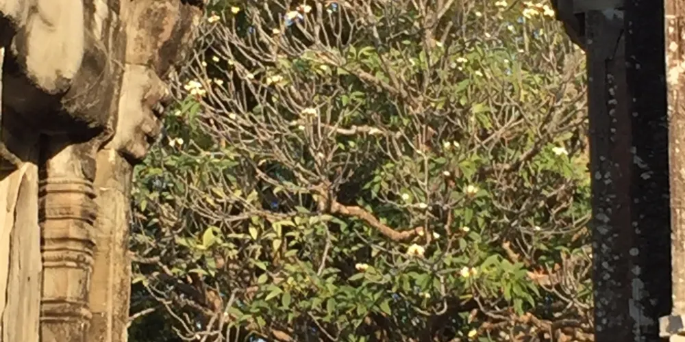 爬上陡峭的台階,在一、二層台階的四角各有4座與真象同樣大小的大象雕塑,源於四巨象支撐宇宙的古印度神話。它們身披戰甲,雕刻精細、栩栩如生,只可惜有些已經殘缺不全。