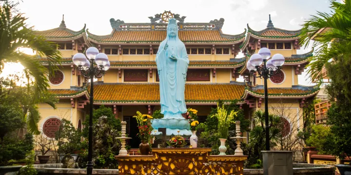 Pho Da寺建於1923年,是峴港最重要的佛教寺廟,併兼具中西風格。現在有很多年輕的和尚在此學習、生活,Pho Da寺也就慢慢地變成了一所佛教大學。寺中有個橢圓形的湖,湖中有一座高三米的觀音像,此外還有三座青銅佛像。這裡也是當地人進行佛事活動的聚集地。