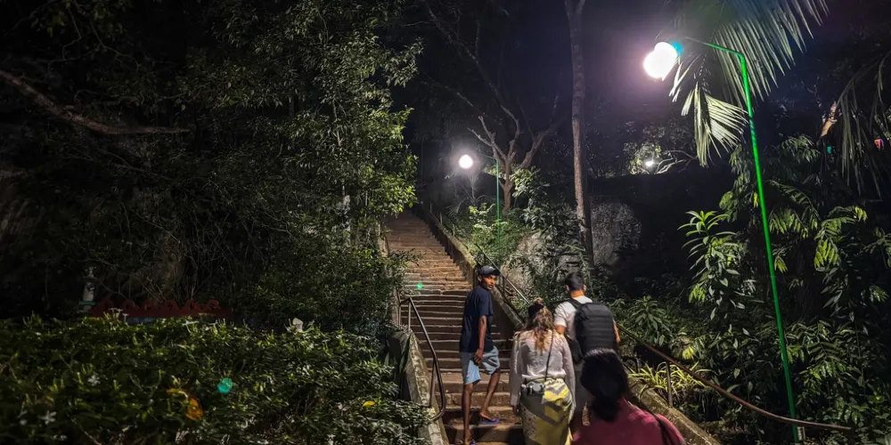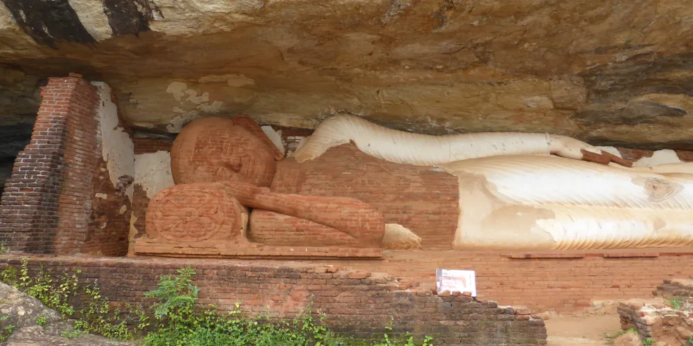 攀登Pidurangala大概需要45分鐘,入口在山下的同名寺廟。寺廟中有幾座古代石窟和佛像。從寺廟開始攀登台階,直到看到一座臥佛之後,階梯消失,需要走幾十米小路,然後爬過一堆巨石才能來到山頂平台。攀爬巨石有一定難度,如果遇到難以攀爬的地方,請另找旁邊的路徑。山頂景色非常好,可以遠望獅子岩和周圍的叢林。躺在巨石上,天地只此一人,分外愜意。