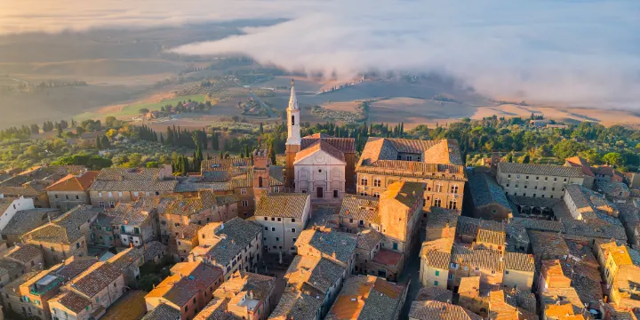 皮恩札是奧爾恰谷的一顆璀璨明珠,被譽為庇護二世教宗之城。 1405年誕生於此的教宗庇護二世,在1459至1462年間改造故鄉,不僅賦予城鎮新貌,更委託建築大師貝爾納多·羅塞利諾打造了主廣場周圍所有建築。因其獨特價值,1996年皮恩札被聯合國教科文組織列為世界遺產。
