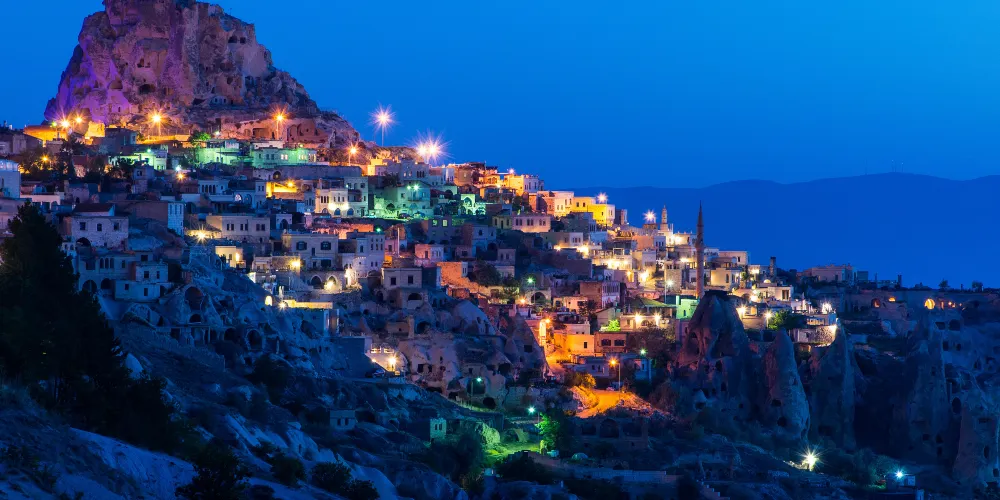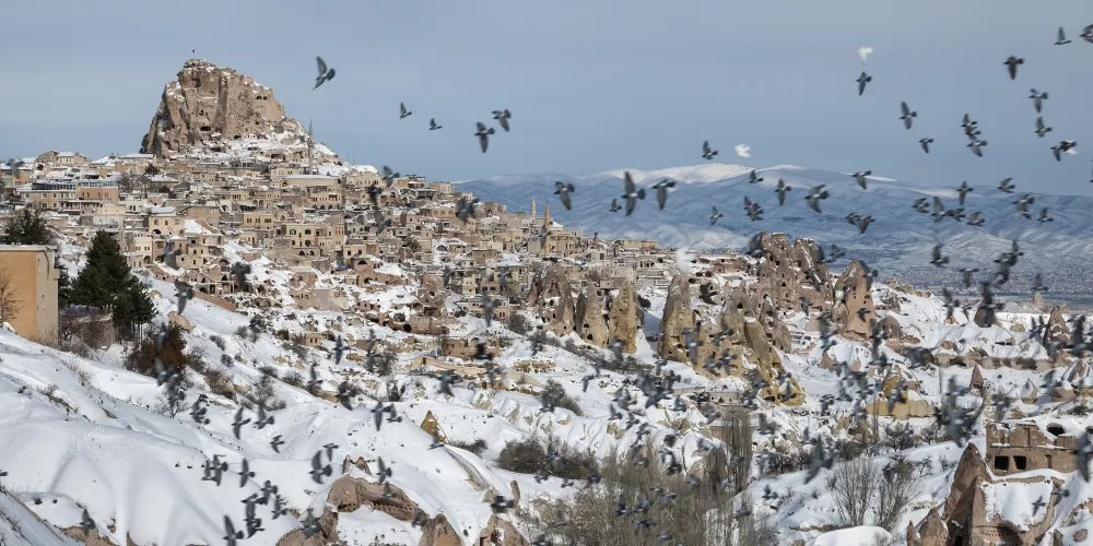 烏奇希薩爾城堡實際上是在一塊60公尺高的巨大岩石上開鑿出的要塞,並以此為中心形成的小聚落。在岩石的表面密密麻麻地分佈著大小不一的洞穴,這些都是鴿子窩,樣子十分奇特。