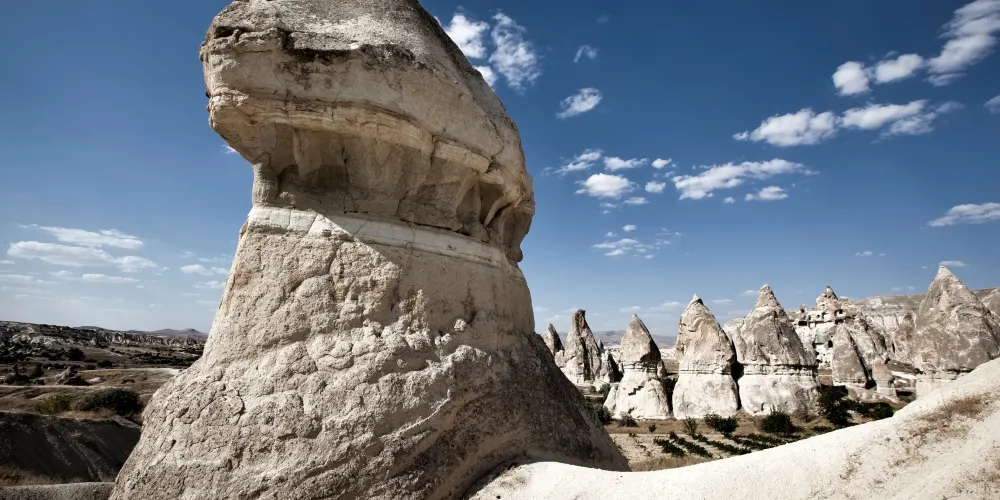 愛情谷以斑點岩層而聞名,有奇特的岩石構造和岩洞,這裡起初是基督教徒躲避羅馬迫害的避難處,這些半隱居人群留下了許多歷史遺跡。除了有美麗的風景和極佳的遠足路線外,還有大批的火山灰結構,高聳入雲,形態逼真,引來許多世界遊客。
