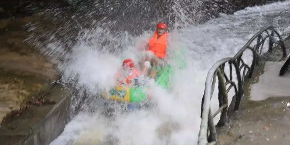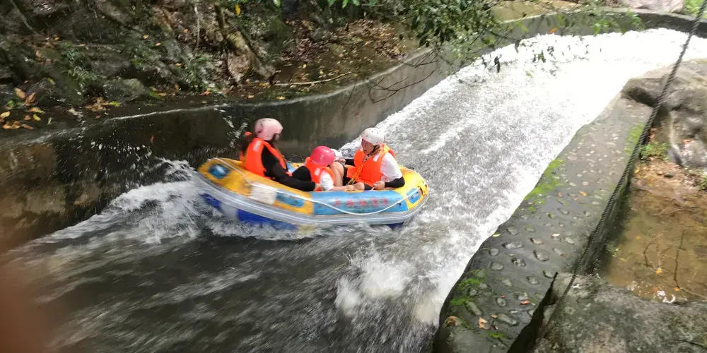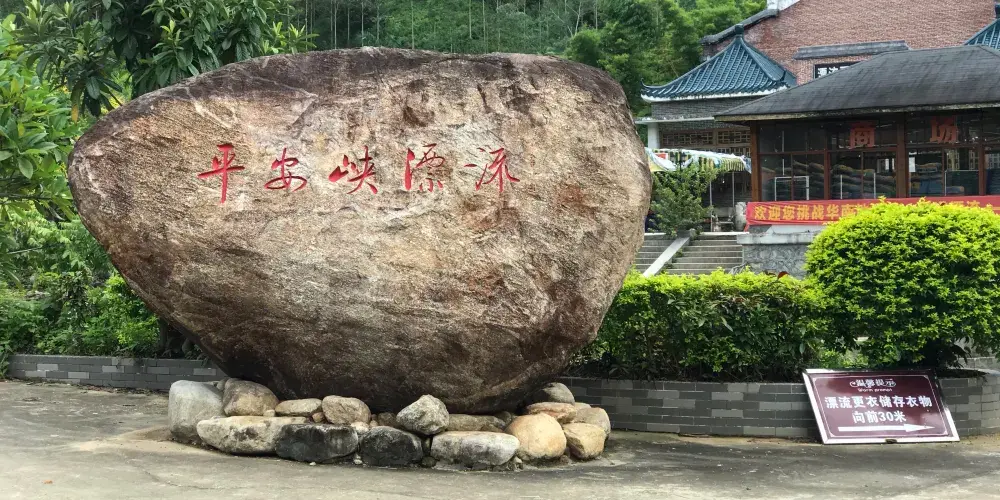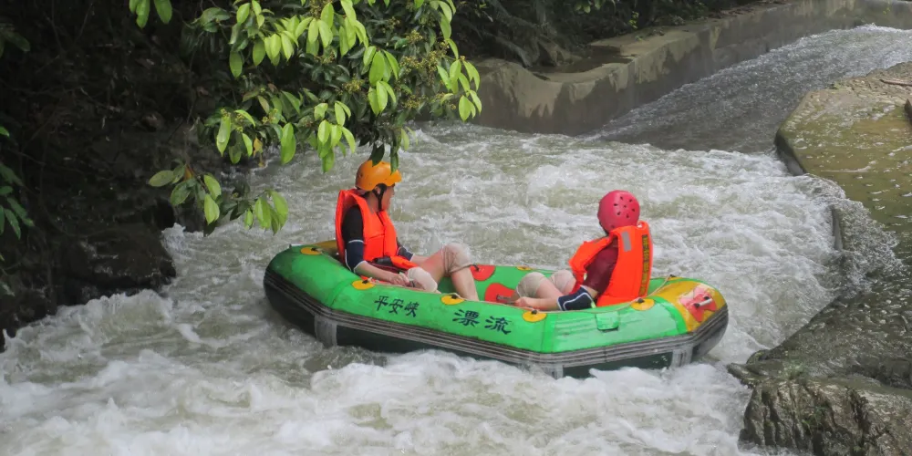 平安峽漂流位於惠州市博羅縣柏塘鎮平安林場平安山生態旅遊區,景區內植被茂密,景觀優美。這裡形態各異的瀑布,驚險刺激的隧道漂流河道,還有梅林、千年古寺等,形成此地獨特的自然景觀。這裡的漂流河段全長約3公里,落差達上百米,橡皮筏在溪流中跌宕起伏,非常刺激。
