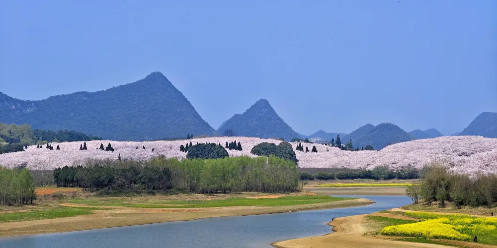 則評價貴安櫻花園是貴州省花卉苗木培育基地,位於貴安新區高峯鎮北部、紅楓湖上游 ,地處貴陽安順兩市之間,毗連貴安大道,距貴陽36千米、安順48千米。 總佔地面積約12000畝。貴安櫻花園有繁櫻廣場、尋櫻園、漫櫻園三個核心景觀區,櫻花園已栽種近70萬株名貴櫻花,是世界規模大、品種全、 海拔高的連片櫻花種植基地。