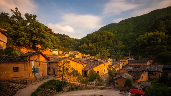 平田村位於海拔610餘米之處,依山而建,羣山環繞,古樹環抱,晨間雲蒸霧繞,晴日向晚,則有晚霞織錦。外表清麗,骨子傳統,四分之一的村民脱離了鄉土生活,四分之三的人仍然生活在這方水土。自然風貌也好,並被定位為“傳承傳統農耕文化,融入時尚文化元素”的特色民宿村。夯土的黃牆,黑色和磚紅相間的瓦,木色的門窗,依山而建的平田村,十分美麗。選擇一個令你傾心的民宿,住上幾個小日子,感受在“雲上的村莊”的慢生活。