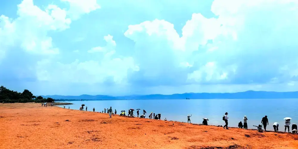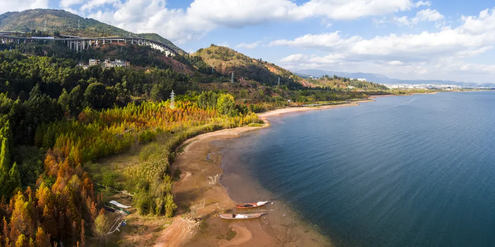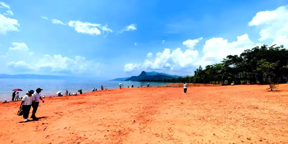 澄江紅沙灘位於雲南澄江市撫仙湖西岸的紅山咀處。從澄江市區驅車出發,二十多分鐘就能到達。從空中俯瞰,湛藍的天空之下,湖面波光粼粼。醉人的紅色沙灘與五彩斑斕的水杉林交相輝映,充滿無限的古風詩意,構成一幅美麗畫卷。澄江歷史上為郡、路、府、縣治地,有“文風不讓中原盛,民俗還如太古淳”的美譽。澄江屬中亞熱帶高原季風型氣候,地處滇中城市經濟圈、三湖生態城市羣、撫仙湖—星雲湖生態建設與旅遊改革發展綜合試驗區、昆玉旅遊文化產業經濟帶的核心區域。