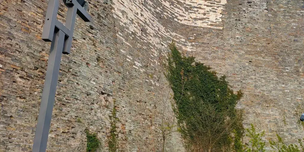 方城是明孝陵寶頂前面的一座巨大建築,外部用大條石建成,底部為須彌座。而明樓就在方城之上,原本的黃瓦大屋頂已毀,後來進行了修復。沿著方城左右兩側的步道即可登上明樓。