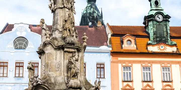 黑死病紀念柱就矗立在斯沃諾斯基廣場上,是小鎮的著名地標之一。石砫底部有一個六棱形噴泉,以環繞狀包圍紀念柱。底部上方有一群人像雕塑,較低的一排中有聖瓦茨拉夫、聖維特、聖約翰福音傳教士等,在上面一排,有聖猶大撒迪厄斯和聖芳濟、 聖塞巴斯蒂安等。