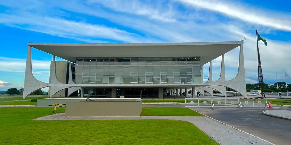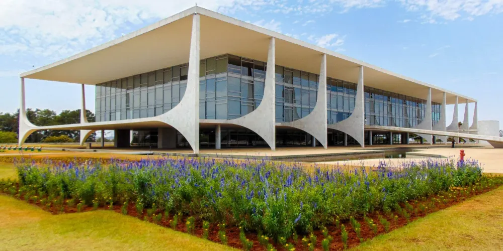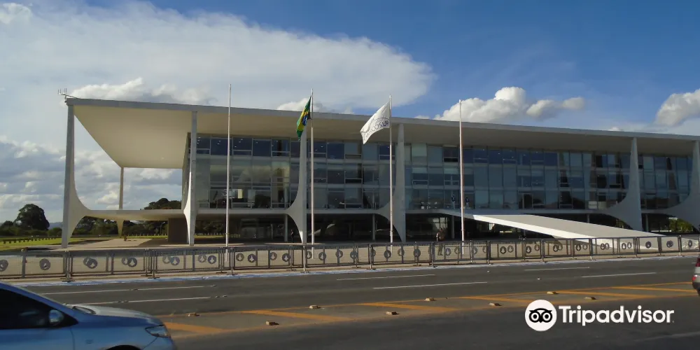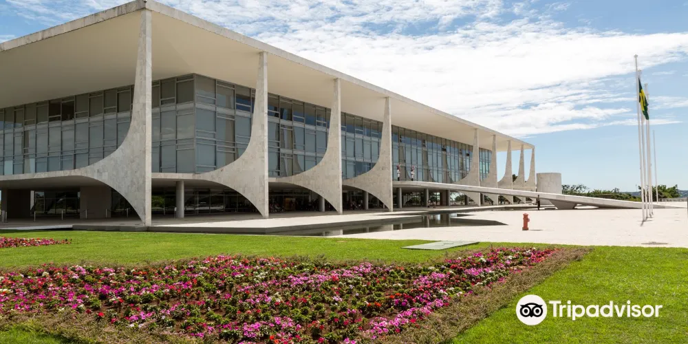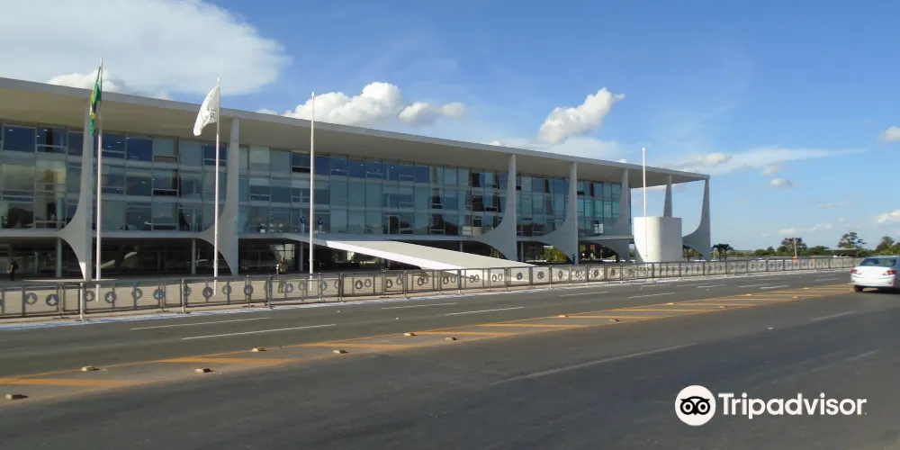 總統府是一座長方形的四層建築,莊重而明快。從二樓到地面有一巨大水泥鑄成的斜坡。在兩層樓高的總統府前面,立着一座兩人持矛並肩而立的“首都建設者”銅像。既為表彰和紀念成千上萬名為巴西利亞建設付出辛勤汗水的勞動者而建,又象徵著巴西團結一致。