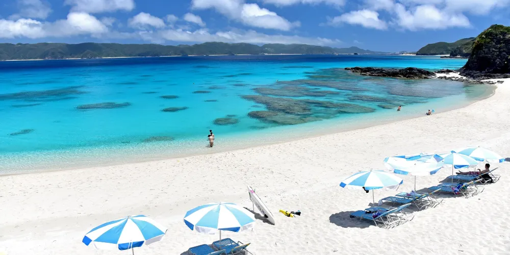 潔白的沙灘上擺放着一排排的躺椅與遮陽傘,遊客們可以在這裏悠閑地度過一整天,無論是躺在遮陽傘下還是在清澈碧藍的海水中游泳,都能感受到度假帶來的快樂。