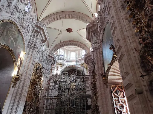 聖普里斯卡教堂位於墨西哥有名的城市塔斯科銀城,是全城醒目的標誌建築。教堂由一位有法國血統的西班牙人唐·何塞於1751年出資修建立,是一座具有巴洛克風格的粉紅色大教堂。教堂外面佈滿精美的雕塑,裏面金碧輝煌,聖壇由黃金製成,十分奢華。