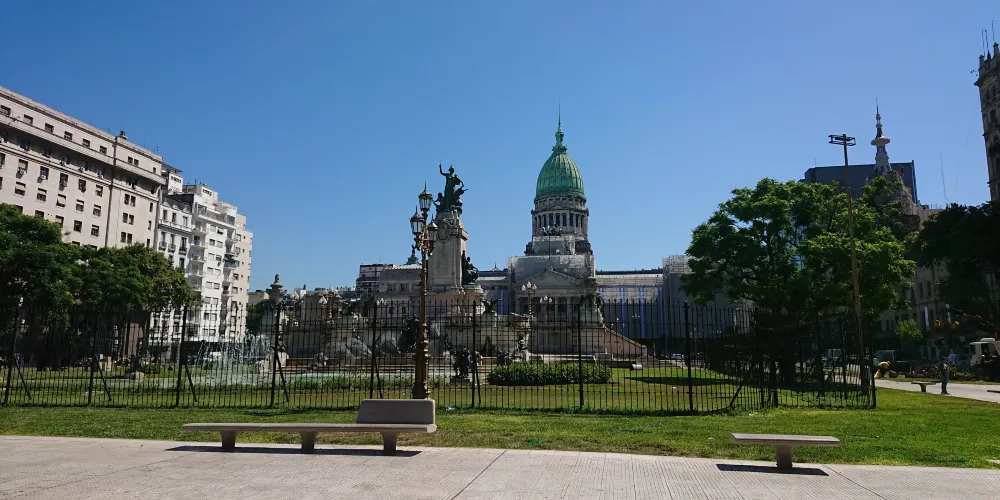 國會廣場是布宜諾斯艾利斯較大的廣場,你可以從五月廣場向西走,沿五月大道一直走到盡頭,便可到達。這裏四處可見覓食的鴿子,喂鴿子的遊客和當地人。廣場上矗立着聞名的兩屆議會紀念碑(1813年制憲大會和1816年議會)。