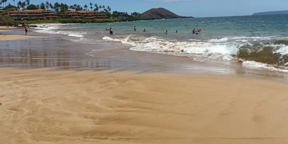 這個沙灘較為寧靜,可以在這裡曬日光浴、遊泳、浮潛。從這裡還能看到摩洛奇尼(Molokini)島和卡胡拉韋(Kahoolawe)島的壯美景色。