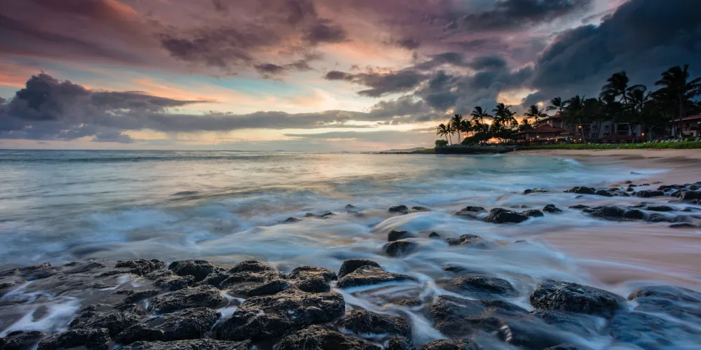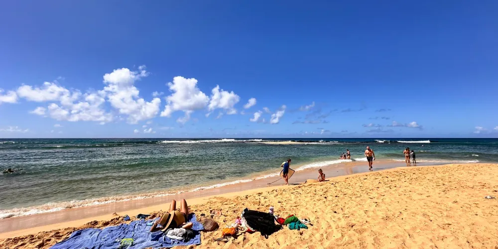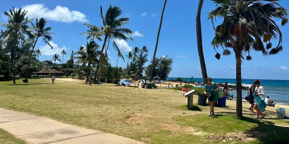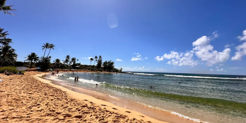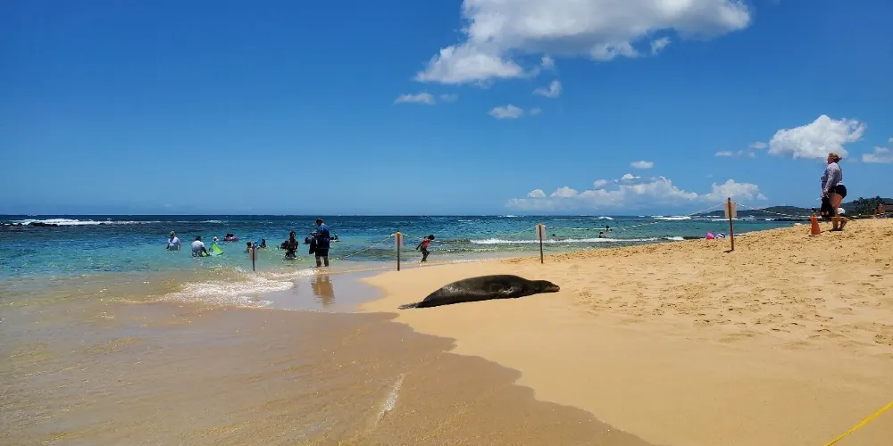 波普海灘公園位於可愛島的南端,是考艾島最有名的海灘之一。海灘並沒有過度商業化,有清澈見底的海水和乾淨的沙灘。另外,目前全球僅剩千頭的夏威夷僧海豹就在這裡生活,它們會懶散地躺在沙灘上休息,或是在海中遊泳。