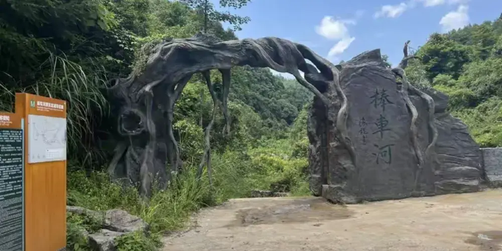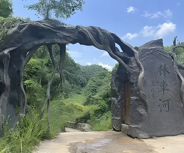 捧車河是一個以地縫地質地貌為特色的自然景區。捧車河溝谷縱深,以谷幽、崖美、岩奇、水麗聞名。景區內的漂流河段全長4公里,漂流過程中,遊客可以欣賞到一橋二泉二洞五磐九潭兩樹一瀑等自然景觀。