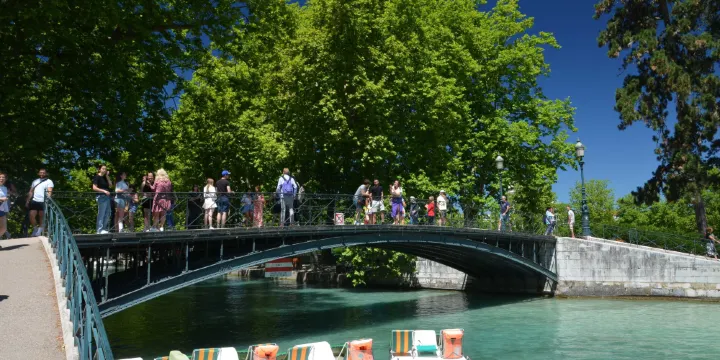 愛情橋是一座坐落在休河上的小橋,這兒是一條往湖東北走的必經之路,橋西是一個小碼頭。這座看似較為普通的小橋,卻是思想家盧梭和華倫夫人曾經約會的地方,盧梭在《懺悔錄》中描寫了他在安那錫度過的人生中美好的青年時光,而他就是在這裏邂逅並愛上了美麗的華倫夫人。如今這裡是安納西市民們喜歡的散步之地,而這座橋也成了很多情侶們常會去走走的地方。