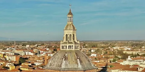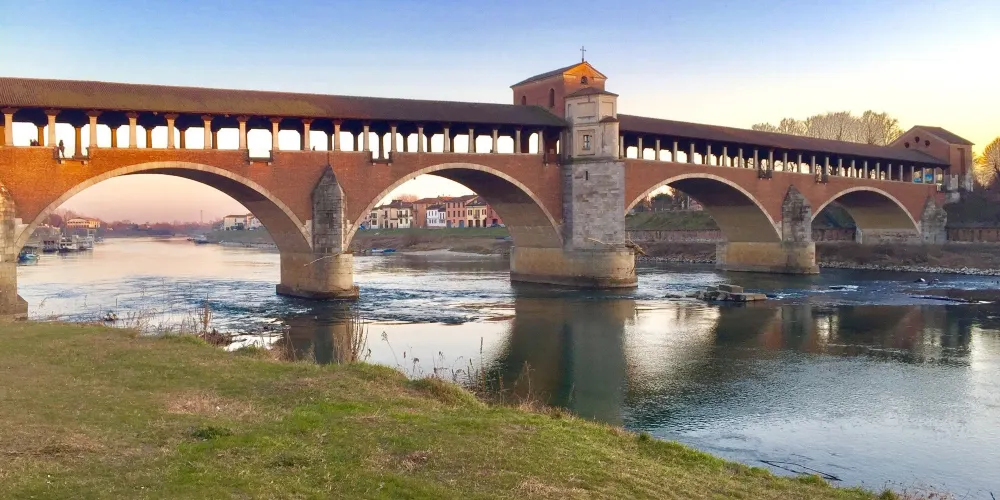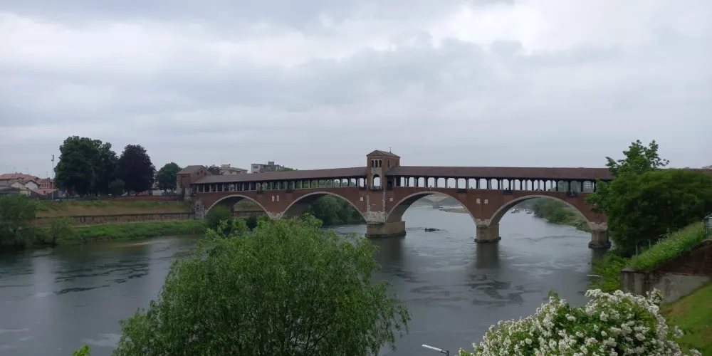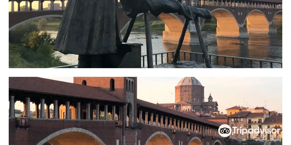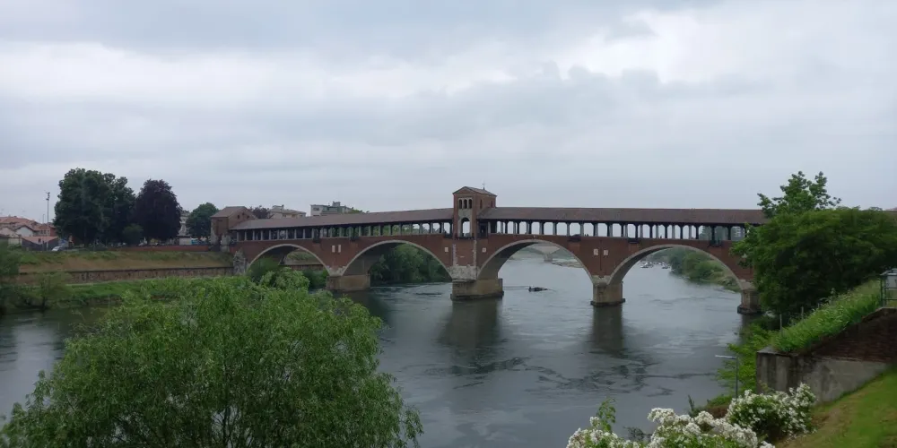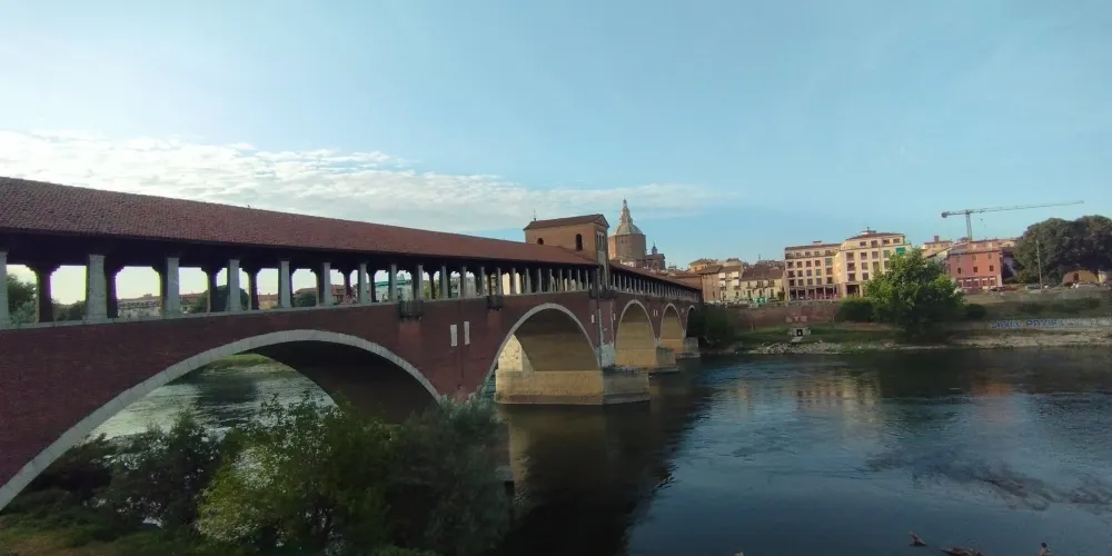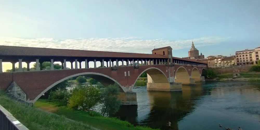 Ponte Coperto是一座橫跨提契諾河的歷史橋樑,也是帕維亞的標誌性建築。橋樑建於14世紀,後來在二戰中被炸毀並重建。作為一座紅磚砌成的廊橋,它擁有覆蓋橋身的屋頂和兩側的拱廊,這不僅為其賦予了獨特的外觀,也能為過往的行人遮風擋雨。廊橋下的提契諾河,水流舒緩,兩岸綠意盎然。你可以像當地人一樣,靜靜地坐在橋畔的河岸上,看著河水緩緩流淌,任思緒放空,感受帕維亞這座「寧靜之城」的悠閒節奏。這座橋見證了帕維亞從倫巴第王國首都至今的漫長歲月。當你行走在橋面上,腳下是跨越了數世紀的石板,彷彿能觸摸到歷史的脈絡。廊橋連接了帕維亞老城與對岸區域,站在橋上,可以眺望老城的風貌。