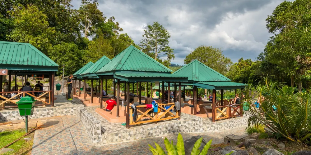 波令溫泉坐落在熱帶雨林的環抱之中,周圍被鬱鬱蔥蔥的植物和豐富的生物所圍繞。遊客可以在溫泉池中放鬆身心,享受大自然的寧靜與美麗。溫泉區設有多個露天浴池,讓遊客可以依照自己的喜好選擇不同的溫度和環境。此外,還有私人浴池可供租用,提供遊客更私密的享受。